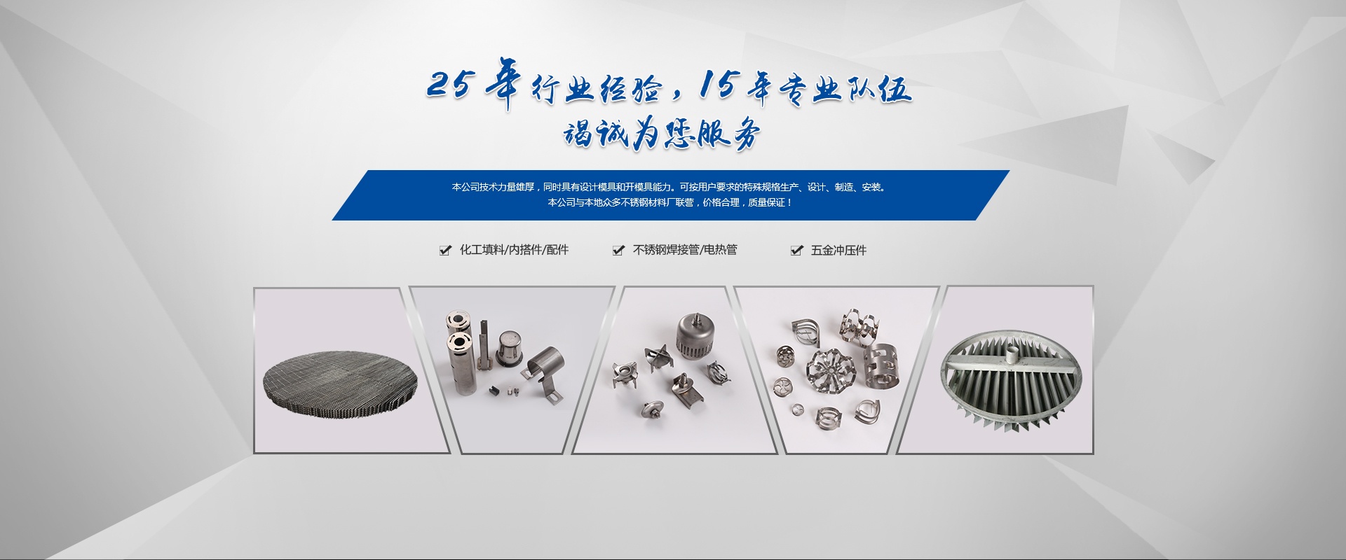嘉興市久達不銹鋼有限公司原海鹽中晟不銹鋼有限公司,本公司是全國化工行業(yè)和中國石化總公司推薦新型填料、塔內件及配件產品的專業(yè)生產廠。2009年建成標準化廠房,生產能力得到進一步的提升,效率也更加高效。散堆填料采用高速沖床一次成型技術生產。